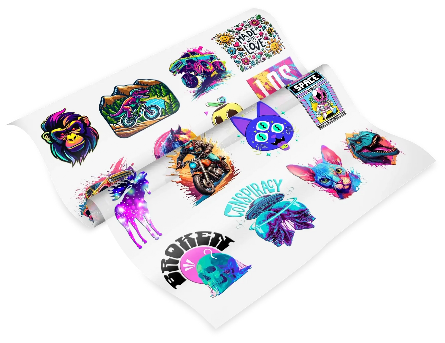 A DTF Gang Sheet is a single sheet, of various lengths, packed with multiple custom designs by you, allowing you to print and press multiple graphics. This efficient layout maximizes space, saves time, money, and is perfect for bulk protection.
